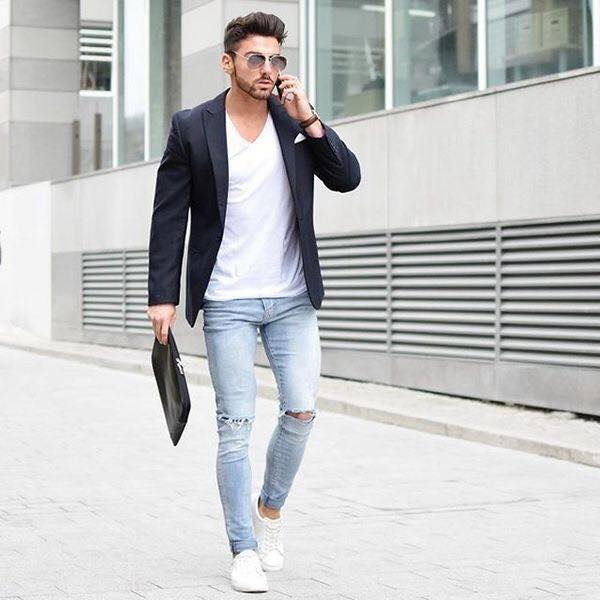 Seguramente te estas preguntando si utilizar jeans, playera o camisa con saco se ve bien, la respuesta es que si, sabiendo combinar correctamente los colores de tu saco con el de la playera y los jeans, lograras tener un aspecto super cool y apropiado prácticamente para cualquier ocasión, intenta alguna de las combinaciones que te presentamos a continuación...