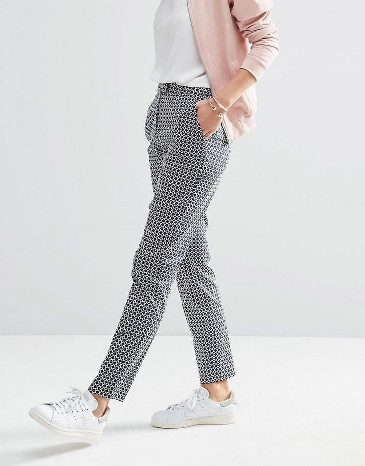 Los outfits para oficinas dan un super giro usando unos tenis blancos y te vez mas relajada.